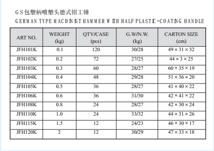 GS包塑柄喷塑头德式钳工锤